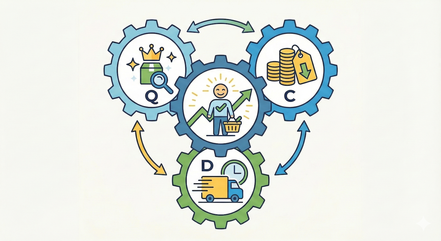 この記事の文字数は4585文字。この記事の読書の想定は12分です。 QCDとは QCDとは、製造業で生産管理を行う上で非常に大切な3つの要素である「品質(Quality)」、「価格(Cost)」、「納期(Delivery)」の頭文字を並べた言葉で、ものづくりを行ううえで最も重要な概念の一つとされています。 Q : Quality → 商品・サービスの品質 C : Cost →  商品・サービスの価格 D : Delivery → 商品(サービス)の納期 これを私たちの日常生活に当てはめてみるとどうなるので ...